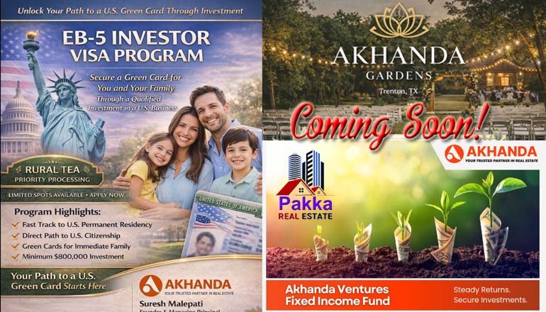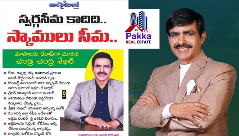 రియల్ ఎస్టేట్ రంగంలో తాజా వార్తలను, అపార్ట్మెంట్స్ లో 1BHK , 2BHK, 3 BHK Flats, Villas & Duplex Houses & Plots & Lands అమ్మాలి అనుకున్న, కొనాలి అనుకున్న మరియు రియల్ ఎస్టేట్ ప్రాజెక్ట్స్ ను ప్రమోట్ చేయడానికి మా 'Pakka Real Estate' టివి ని సంప్రదించండి.